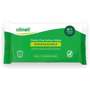 Wipes are supplied in a natural recyclable cardboard box with a sugar cane box liner, providing an environmentally friendly alternative to conventional plastic tubs